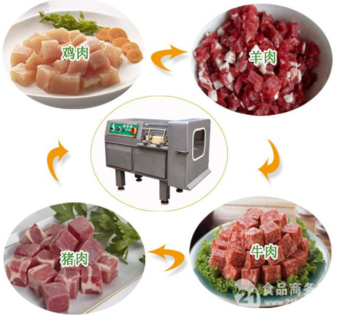 多功能切肉切丁机是诸城舒克机械针对鲜肉特性自主研发的一台切丁机设备,主要用于鲜肉和冷鲜肉的切丁,机器可连续工作,生产效率高,一次成丁,填补了目前国内市场鲜肉切丁领域的空白。