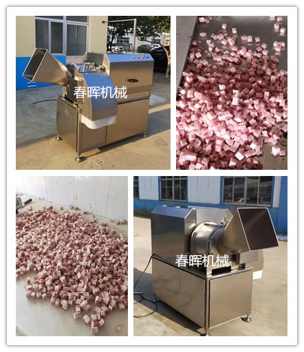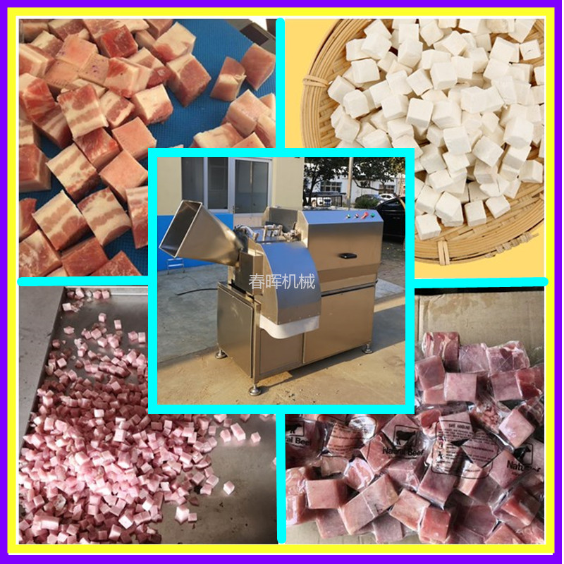 本机器可将冻肉(脂肪可切低至零下16度,瘦牛肉可切低至零下6度,猪瘦肉可切低至零下8度)切成片、条、丁。切好的产品由于仍然在冻结状态,方便后续的包装和配送。